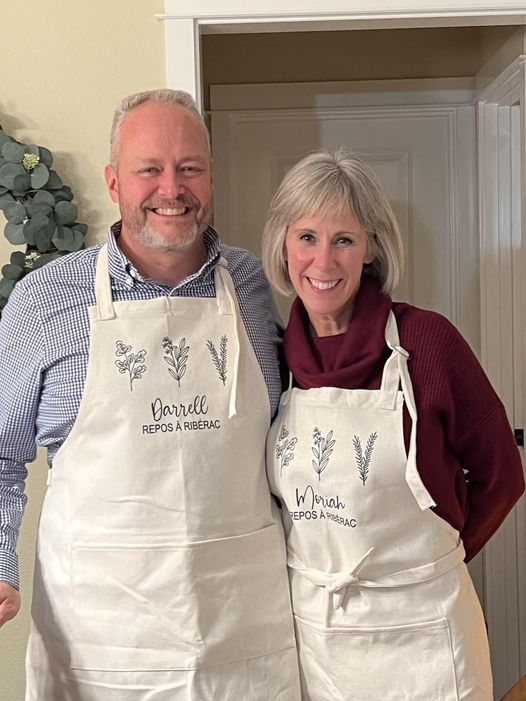 Last week, while Darrell was in Colorado for a conference, I finished packing our six suitcases, mailed three more boxes to France, closed our Bainbridge Island PO Box, said goodbye to friends, cleaned our temporary home next to the water, and gave our Jeep to Noah, who gave his to Caleb. Our friends hosted dinners for us, and we received such thoughtful notes and gifts to include aprons with our names and the name of our B&B on them.
