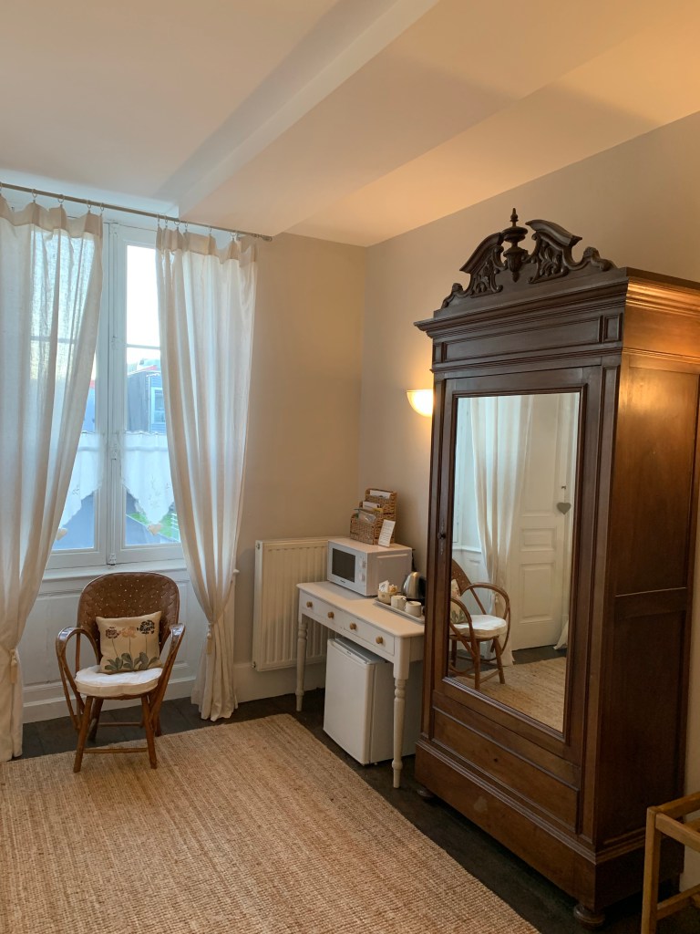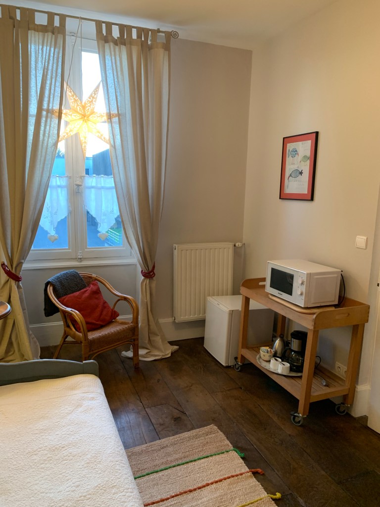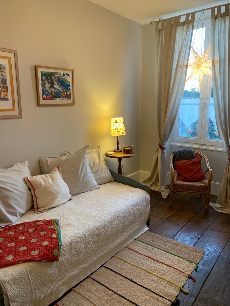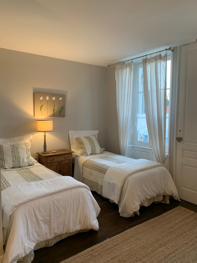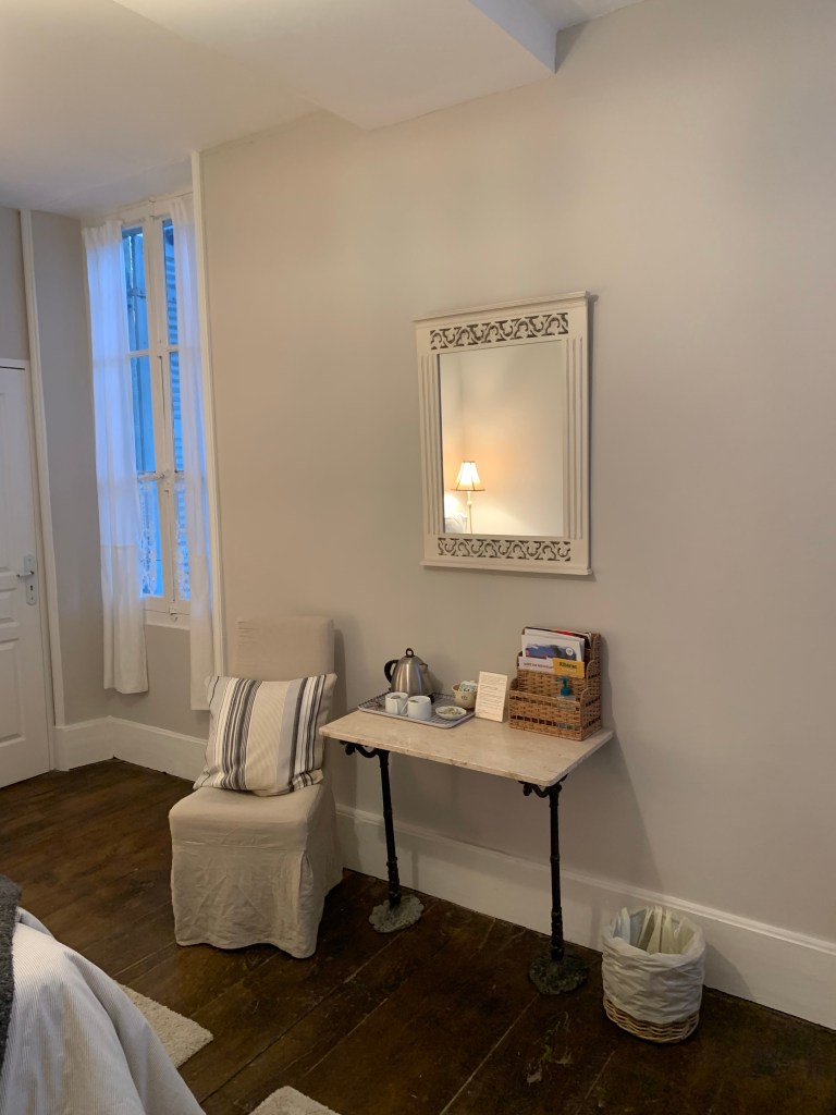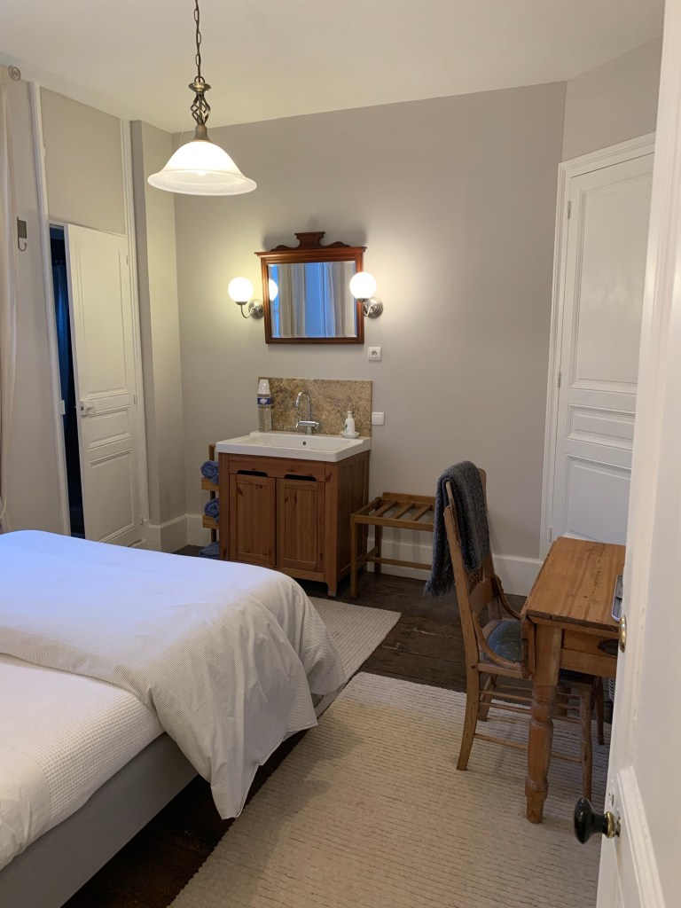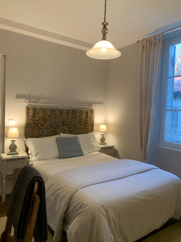 Some of you have asked details about our accommodations and how to book. We have four guest rooms (accommodating 2 guests each, with the exception of one room that has an additional day bed/trundle in an adjoining room and can host two children). All rooms have an ensuite bath/shower or ensuite shower. We also have a loft apartment, with a full kitchen and living room that can accommodate 4 guests. The loft apartment will be listed on AirBnB in starting in January for summer bookings (we have a tenant there now). Guest rooms can be booked now on booking.com (see Repos a Riberac in Riberac, France) for bookings beginning on January 20. We will soon add the rooms to AirBnB as well. We are still trying to get Booking.com moved over to my control–for now the previous innkeepers have access and are monitoring it for us. We hope to get this resolved very soon (before Christmas) , but because I don’t have access yet, I can’t provide specificity just yet if the rooms are open on a particular date. If you book on booking.com though you should see if your desired date is open.
