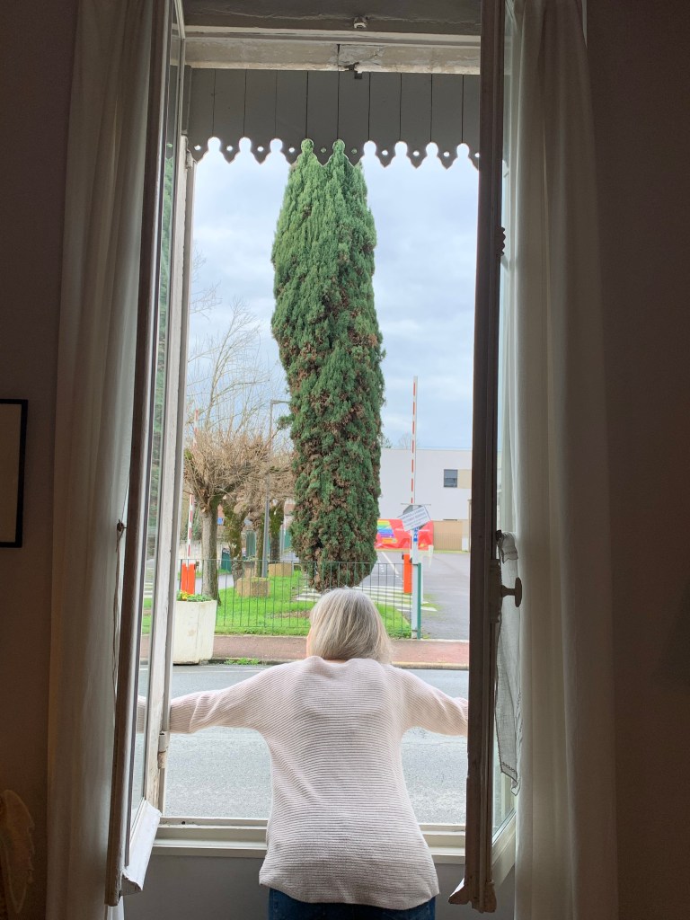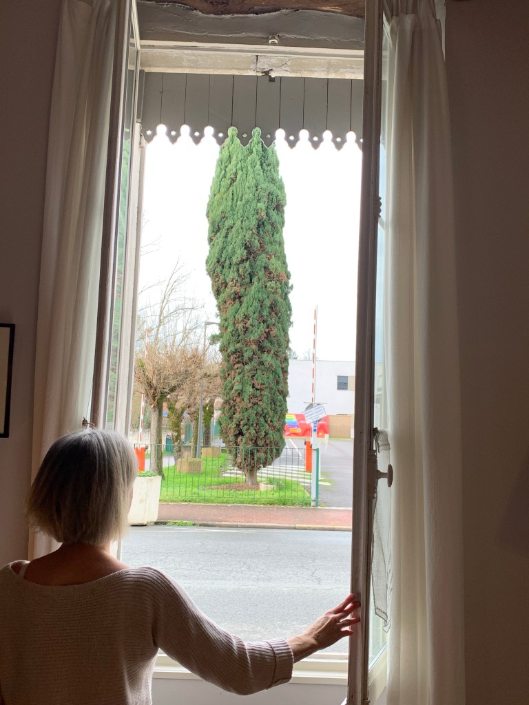 One of my favorite rituals and traditions here in France is the daily opening and closing of les volets–French shutters. Ours are wood and we have 14 of them on the front of our house and one set for our side door. Every night we close the volets and open them every morning. It sounds pretty simple and mundane, but there is something symbolic in the morning about turning the knob on the long, rectangular windows, opening them toward you and then unlatching the volets and pushing them out toward the world and against the exterior of the house. The simple act requires me to push my head and upper body out into the outside. Then again, in the evening to reach out into the world and pull the volets back in, secure them and close the windows. Every day has a concrete opening and a closing. The whole process is quite fascinating and once I showed our kids how to do it–they volunteered to keep doing it while they were here. I’ve added some pictures below to show the process I used this morning to open the volets on this last day of 2022.
